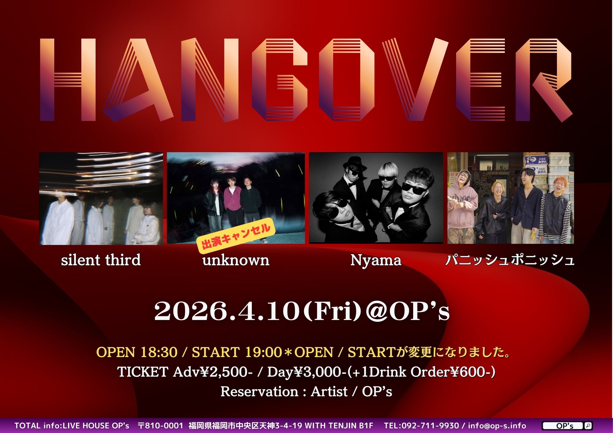 Hangover※OPEN/STARTが変更になりました